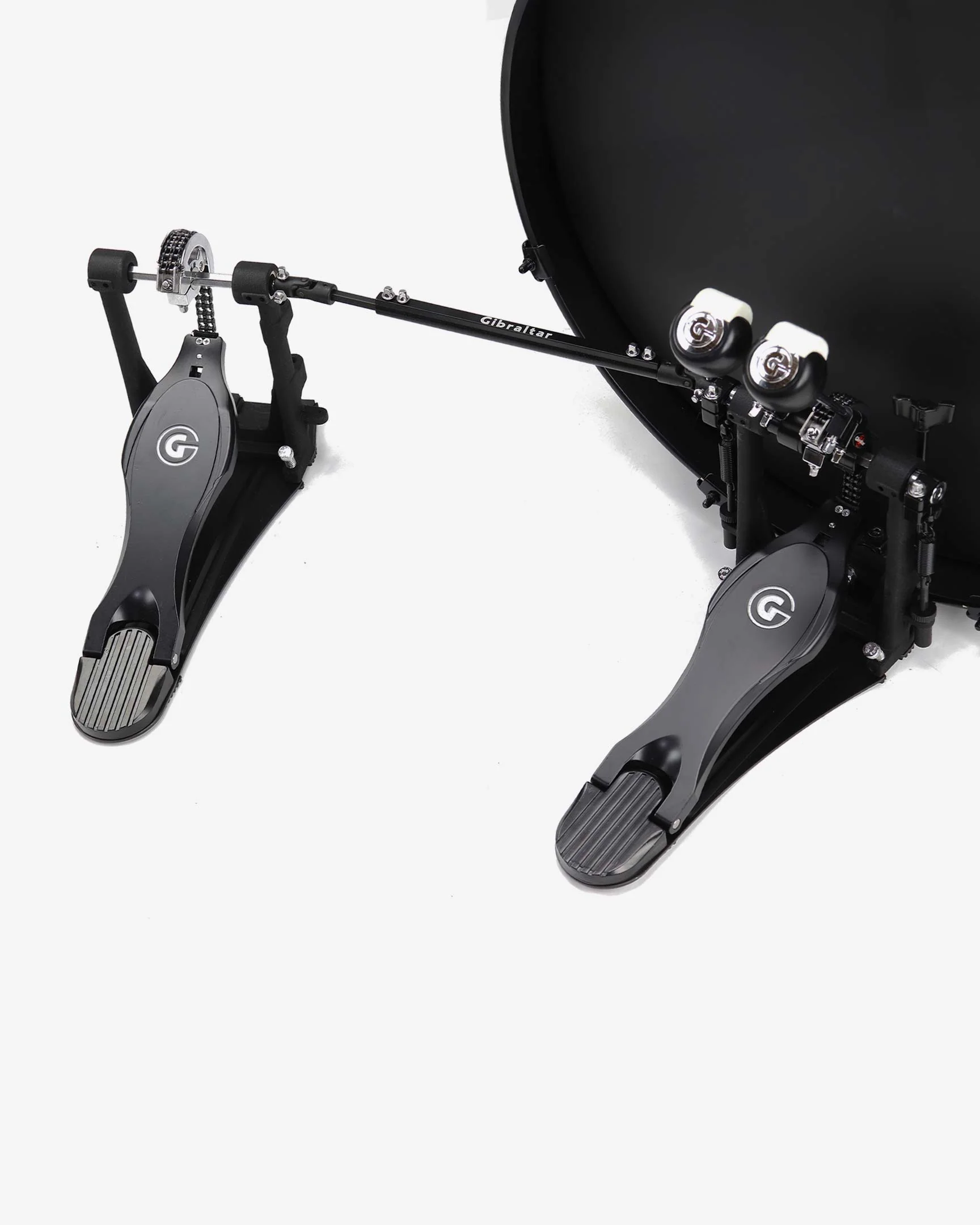 Stay locked in and ready to move with the Stealth G Drive Double Pedal. This high-performance pedal delivers a powerful, fluid response with full control over pedal board height, spring tension, and beater angle. An aluminum base plate provides a stable foundation, while the top-mounted hoop clamp lets you attach or remove the pedal quickly from a seated position.