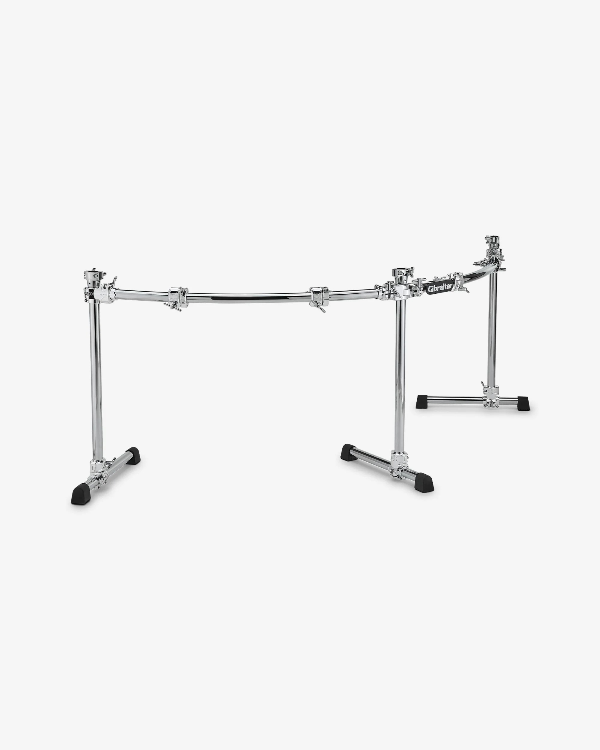 Double bass drum kits can be big, bold, and complicated, but the Gibraltar Curved Double Bass Drum Rack keeps things under control. Designed specifically for drummers with two bass drums, multiple rack toms, cymbals, electronics, and accessories, this rack gives you a powerful, symmetrical setup without the clutter. Right out of the box, you get connections for four drums or cymbals on the crossbars and for one cymbal arm inside each of the three legs. That means no need for extra stands or tripods taking up floor space. The footprint stays tight, leaving more room to move and play comfortably.
